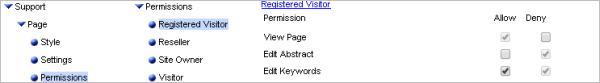 Permissions can be either Unset, Inherited or Applied. An unset permission is blank. An inherited value is grey. An applied value is black. If you look at the above image you can see all three states. If you apply a value, the 'black' applied value is used - note the Inherited value is not removed from the display - because there will be situations where it is useful to know what the inherited value was. InheritanceThe ability for a control to use inherited values allows you to centrally manage the site, keeping multiple components consistent without having to set the values individually for each one. Whenever the inherited value is changed, all child controls set to use the inherited value are updated immediately. To saveTo save changes, click 'Save changes', close the dialog, and refresh the page.